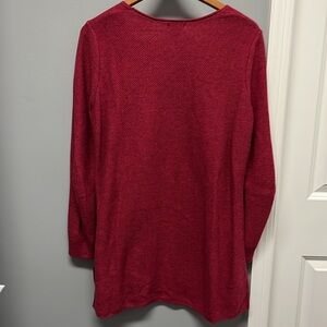 This Old Navy tunic sweater is a gorgeous shade of raspberry with V-neckline, long sleeves and side slits. It measures 22” pit to pit and 29” down center back. Excellent used condition from a smoke free home.
