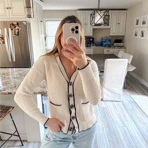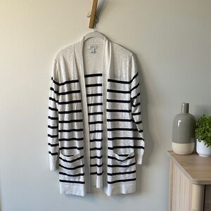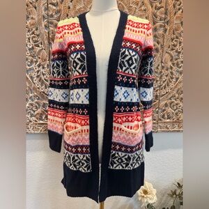 Gorgeous cardigan from Old Navy. Fabric content tag is missing but feels 100% soft cotton to me. Beautiful colors: black, cream, bright red, taupe and burgundy. Would look great as a topper to your neutral outfits.