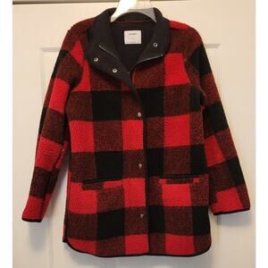 Old Navy Red & Black Plaid Coat By Old Navy Size XS Zip & Snap