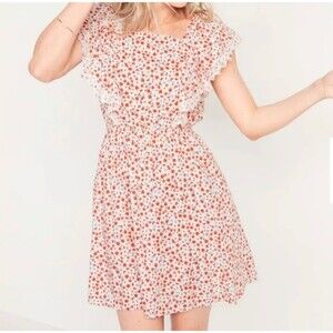 Old Navy Red Floral Waist Defined Flutter Sleeve Mini Dress Size Large Petite