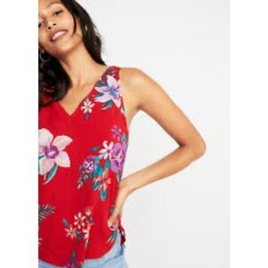 Old Navy Red Hawaiian Floral Tank Top Sleeveless V-Neck Top for Women Size Mediu