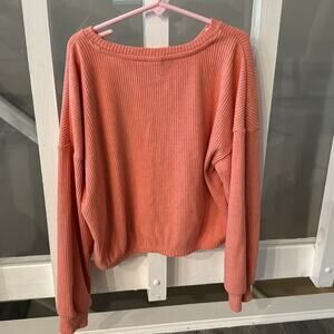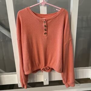 Old Navy Red Plaid Flannel Button Down and Light Orange Ribbed Tie Front Top