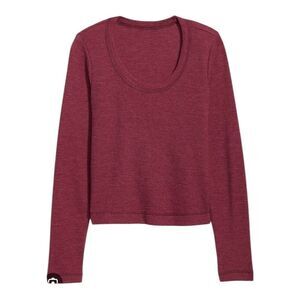 Old Navy Red Red Wine Waffle-Knit Crop T-shirt Long Sleeve Pink Extra Large NWOT