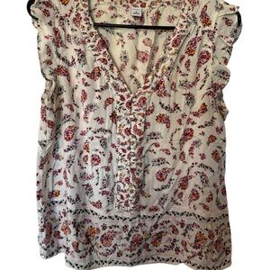 This Old Navy blouse features a vibrant red hue with charming ruffled details, offering a relaxed fit for effortless style. The top's flowing silhouette and elegant design make it a versatile addition to any wardrobe, perfect for both casual and dressy occasions.