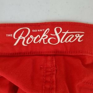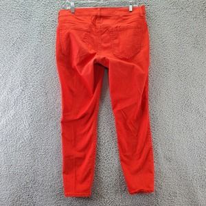 Vibrant red straight leg jeans. Classic five-pocket style. Comfortable fit.