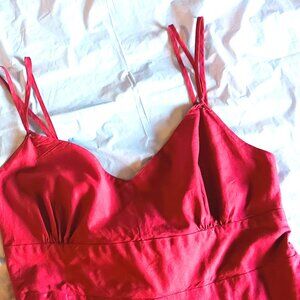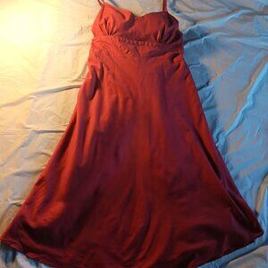 Elegant red dress with a bow detail. Perfect for weddings. Spaghetti straps add a delicate touch.