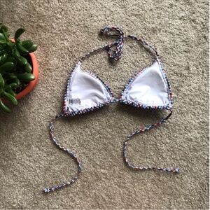 Really fun bikini, pretty colors in red, blue, navy, and white. Perfect for the 4th of July! In close to new condition, it's barely been worn. Sorry can't find matching bottoms so only selling as separate.