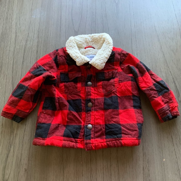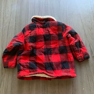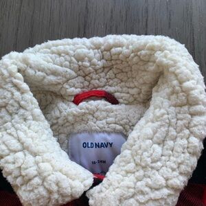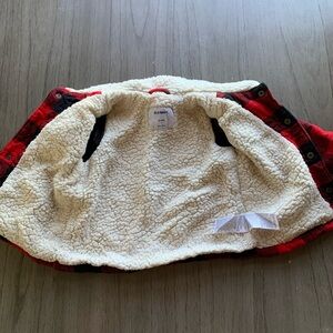 Old Navy Red and Black Plaid Jacket with Cream Sherpa Collar