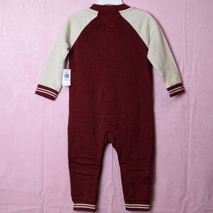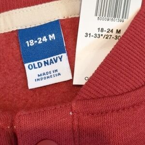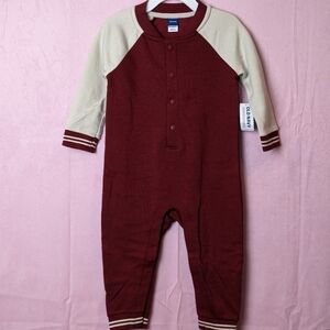 Old Navy baby unisex one piece long sleeve knit outfit in cream and red