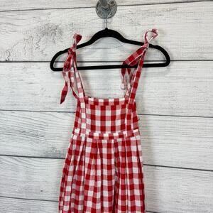 Chic mini dress with a checkered pattern. Features tie straps. Perfect for casual outings.