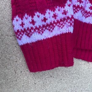 Embrace the festive spirit with this Old Navy cardigan, featuring a vibrant red and white Nordic pattern. The intricate design showcases reindeer and snowflake motifs, perfect for adding a touch of holiday cheer to your wardrobe. Crafted for warmth and style, this sweater is an ideal choice for cozy winter days.