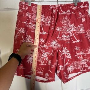 Old Navy Red and White Swim Trunks Palm Trees Beach Print Size Large Summer Swim