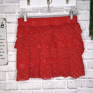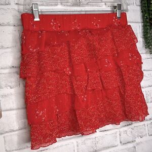 Old Navy Red Floral Tiered Ruffles Boho Hippie Skirt Size XS Small