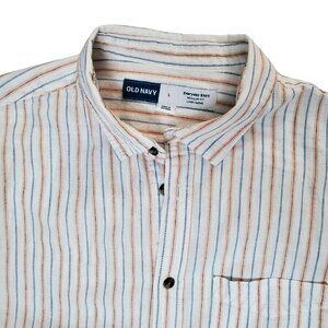 Old Navy Regular Fit Everyday Linen Blend Striped Shirt Size L