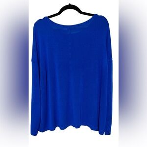 Good pre-worn condition. Some minor pilling due to wear/wash. Very soft & lightweight. Long sleeves. Crew neck. Relaxed fit. 96% rayon, 4% spandex. Machine wash. Approximate 27” from shoulder.