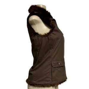 Old Navy Reversible Vest Women's Size S Dark Brown Faux Fur Sleeveless Full Zip