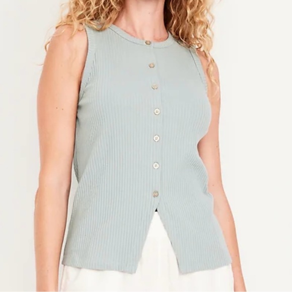 Old Navy Ribbed Button-Front Tank Top - Soft Blue
