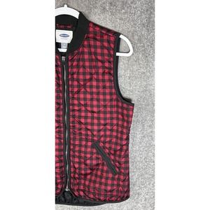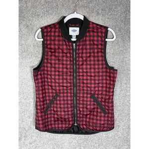 Old Navy Ribbed Collar Quilted Buffalo Plaid Zip Up Vest Womens Size Medium