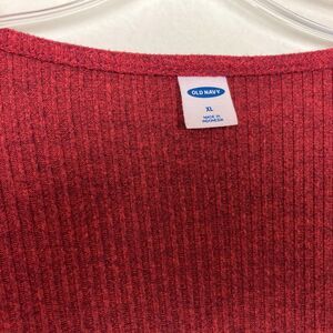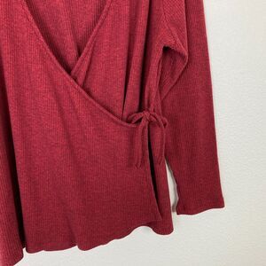 Old Navy Ribbed Knit Surplice Wrap Shirt Size XL Red Orange Stretch Long Sleeve