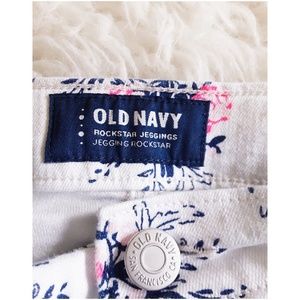 NWOT White Jeggings with navy blue and pink floral design, these are the Rock Star fit with allot of stretch, include the elastic waist band. No damage. All offers considered.