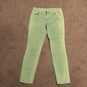 These skinny jeans are a great shade of green. They are comfortable with great stretch. Worn just a few times and in excellent condition.