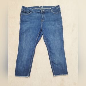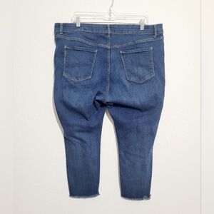 Old Navy “Rockstar” Super Skinny jeans in a women’s size 22 Plus Short. Mid-rise with Secret-Slim pockets for a flattering fit. Classic blue wash with light fading, raw-cut hems, and stretchy fabric for comfort.