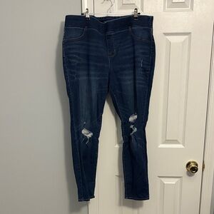 Old Navy Rockstar Mid Rise Distressed Skinny Pull On Jegging Blue Jean 18 Petite