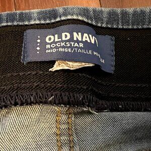 These Old Navy Rockstar jeans offer a chic, distressed look with a comfortable mid-rise fit. Crafted from a blend of cotton, polyester, rayon, and spandex, they provide flexibility and durability. Ideal for casual outings, these jeans ensure a stylish appearance while maintaining comfort.