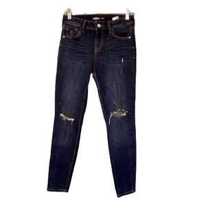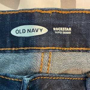 Old Navy Rockstar Mid-Rise Super Skinny Jeans Dark Wash Denim Distressed 2