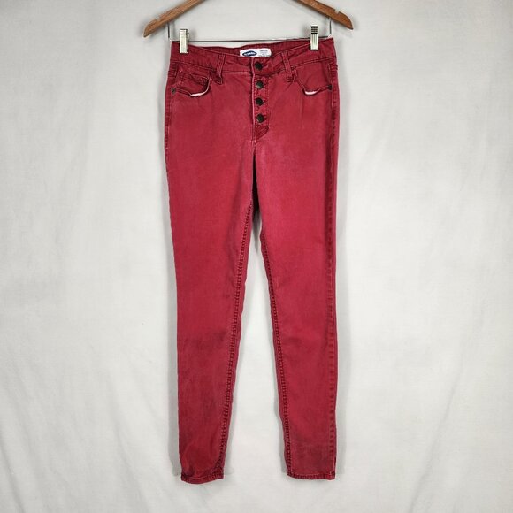 Old Navy Rockstar Super Skinny High Rise Pants Women's 6 Red Button Up Soft