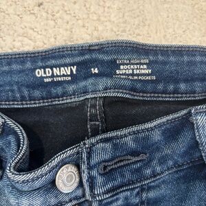 Old Navy Rockstar Super skinny jeans. Distressed knees with black stitching. Super stretchy and high wasted.