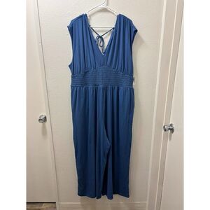 Old Navy Romper Women's Size XXL Blue NWT Wide Leg Jersey Travel V Neck Tie Back
