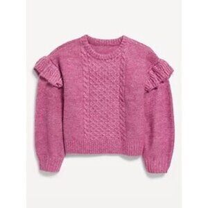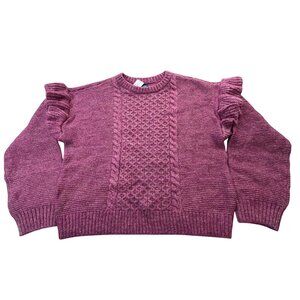 Old Navy Ruffle Crew Neck Pullover Cable Knit Sweater Artichoke Blossom Girls XL