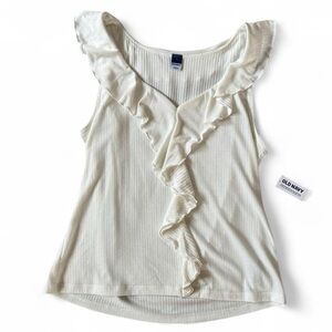 🤍 New with tags Old Navy ribbed ruffle tank in a soft ivory tone (not stark white)