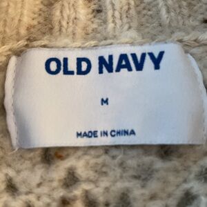 Old Navy brand oatmeal sweater. Ruffle sleeves. You can see slightly through the holes of the sweater. Size M. EUC! Offers always welcome.