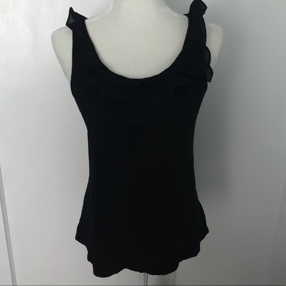 This is the perfect layering piece! Black tank with ruffles at the neckline. It it solid black and not faded (I had to over expose to show the ruffles) Good used condition