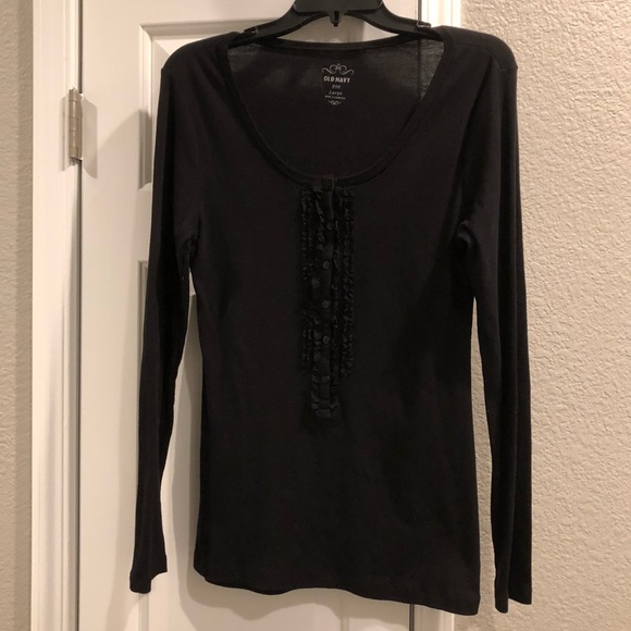 Old Navy Henley long sleeved shirt with cute ruffles. Soft material, has been worn several times, but still has lots of life!