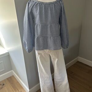 Blue and white gingham top. Great transitional piece. Great preowned condition!