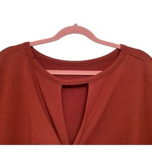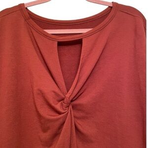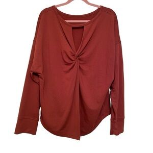 Long sleeve crew neck soft sweatshirt, rust color, twist keyhole open back (see photos)