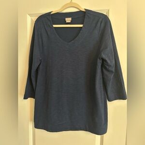 Great condition! Soft, ribbed material. Rust color. Functional henley buttons. Ruffled hem and cuffs