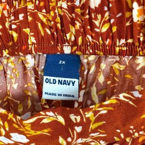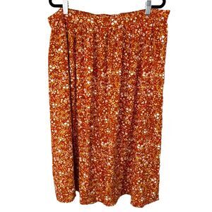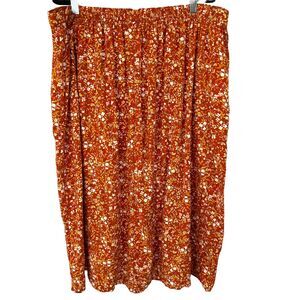 Old Navy Rust red orange with yellow floral print midi skirt Plus Size 2X