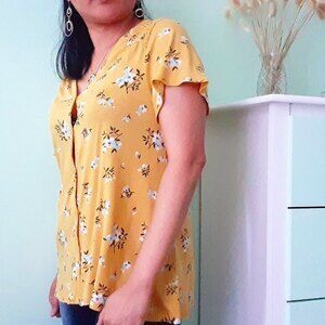 Old Navy Luxe Button down Yellow Floral Tops Size M