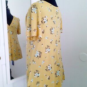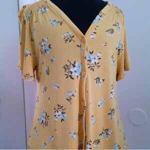 Old Navy SS Luxe Button Front Yellow Floral V-Neck Soft Women's Medium Top