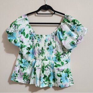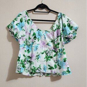 Old Navy SS trapeze white floral Peplum Blouse womens size 2X