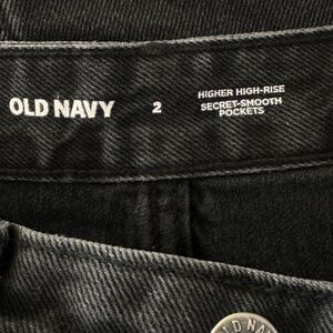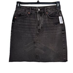 Old Navy SZ 2 A-Line Denim Jean Skirt Distressed Frayed Button-Fly Black Wash