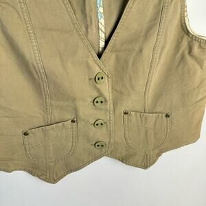 Old Navy Safari Green Big-Button U Pockets Sleeveless Vest Y2K Top Sz Large