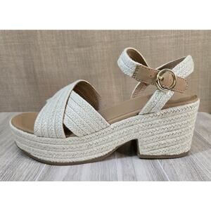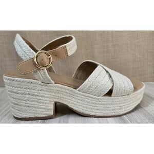 Old Navy Sandals Womens 10 Natural Weave Buckle Strap Casual Wedge Heels Summer