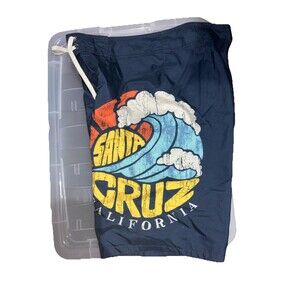 Old Navy Santa Cruz California Logo Size Small Blue Swim Trunks Lined Drawstring