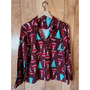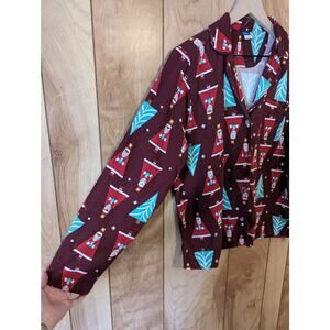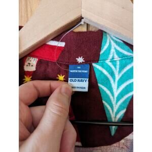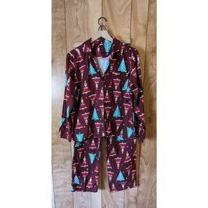Old Navy Santa In The House Pajama Set Flannel Cotton Holiday Maroon Medium