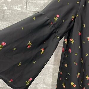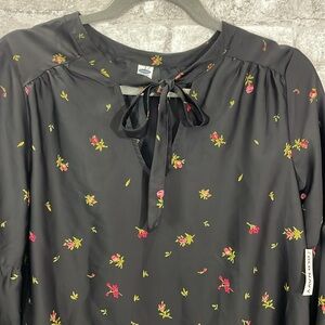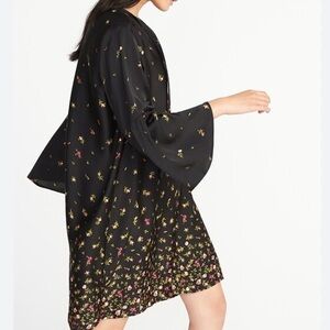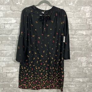 Old Navy Satin Tie-Neck Shift Dress NEW WITH TAGS Color: Black Floral Bell sleeves Tie at neckline
